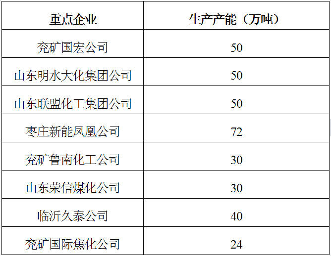表1 2013年山东省部分煤化工产品产能表